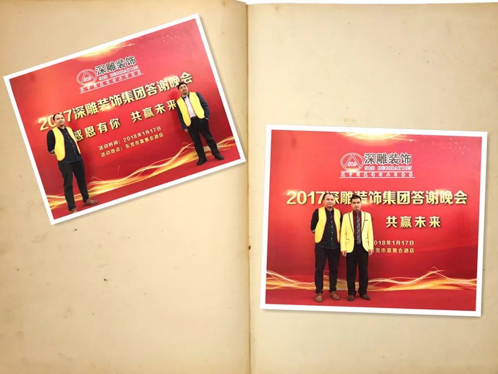 左為設(shè)計(jì)部副總監(jiān)與設(shè)計(jì)部總監(jiān)合影,右為設(shè)計(jì)部副總監(jiān)和深雕裝飾董事長(zhǎng)陳志藝先生。